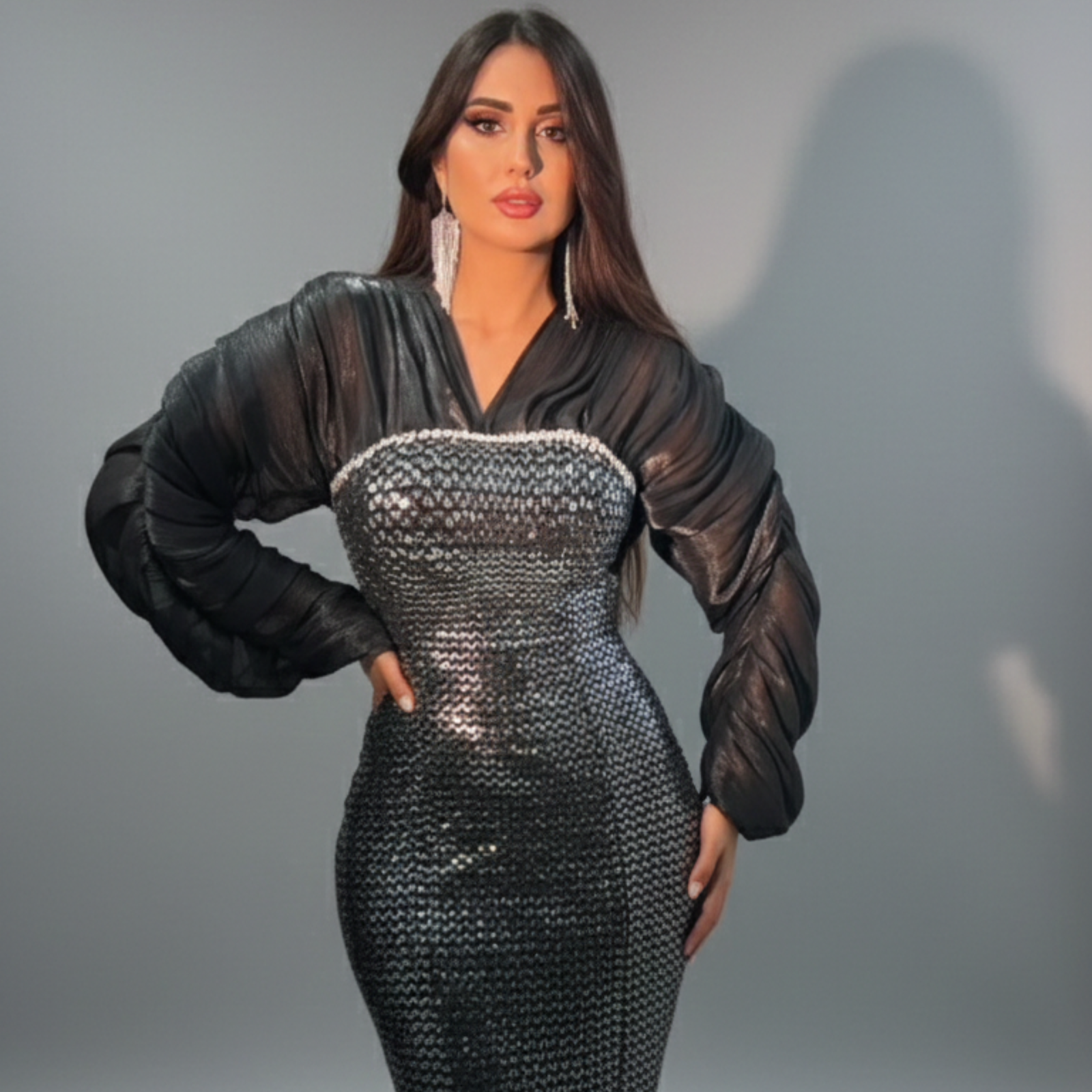 Black Sequin Puff Sleeve Bodycon Dress – By Matching