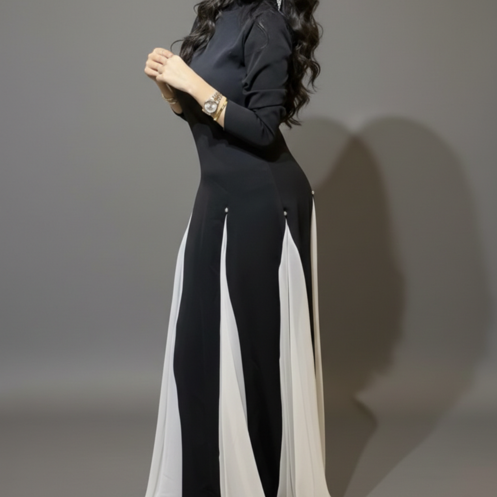 Make a bold and sophisticated statement at your next event with our exclusive Black & White Luxury Dress. Furthermore, because this design is crafted to combine modern contrast with classic modesty, it stands as the ideal choice for formal weddings or upscale parties. Moreover, every detail of this dress highlights the premium quality and unique style that Matching brand is known for.