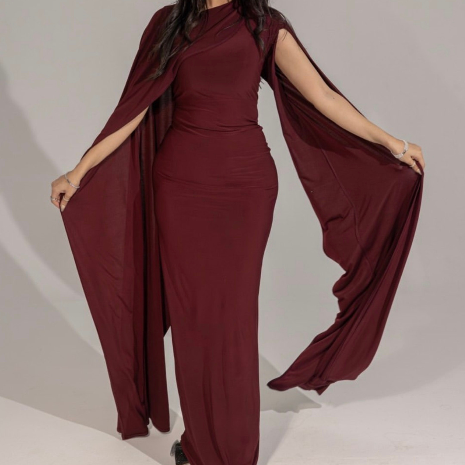 فستان سهرة ناعم (كاب) – ماتشنج | Elegant Cape Dress