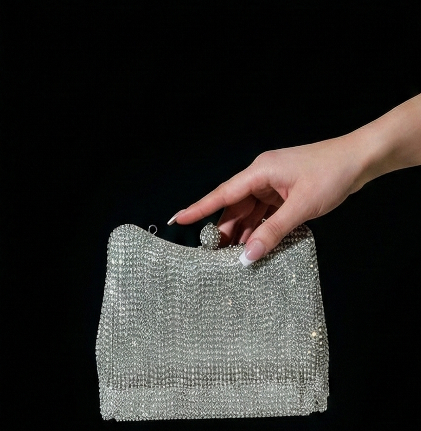 Dazzle the crowd with this exquisite Silver Crystal Fringe Waterfall Clutch Bag. Featuring cascading layers of shimmering rhinestone strands that create a luxurious fluid movement, this luxury silver evening bag is secured with a chic crystal ball clasp. It is the ultimate sparkly bridal clutch or wedding party purse for women who love high-glamour accessories that look like jewelry.